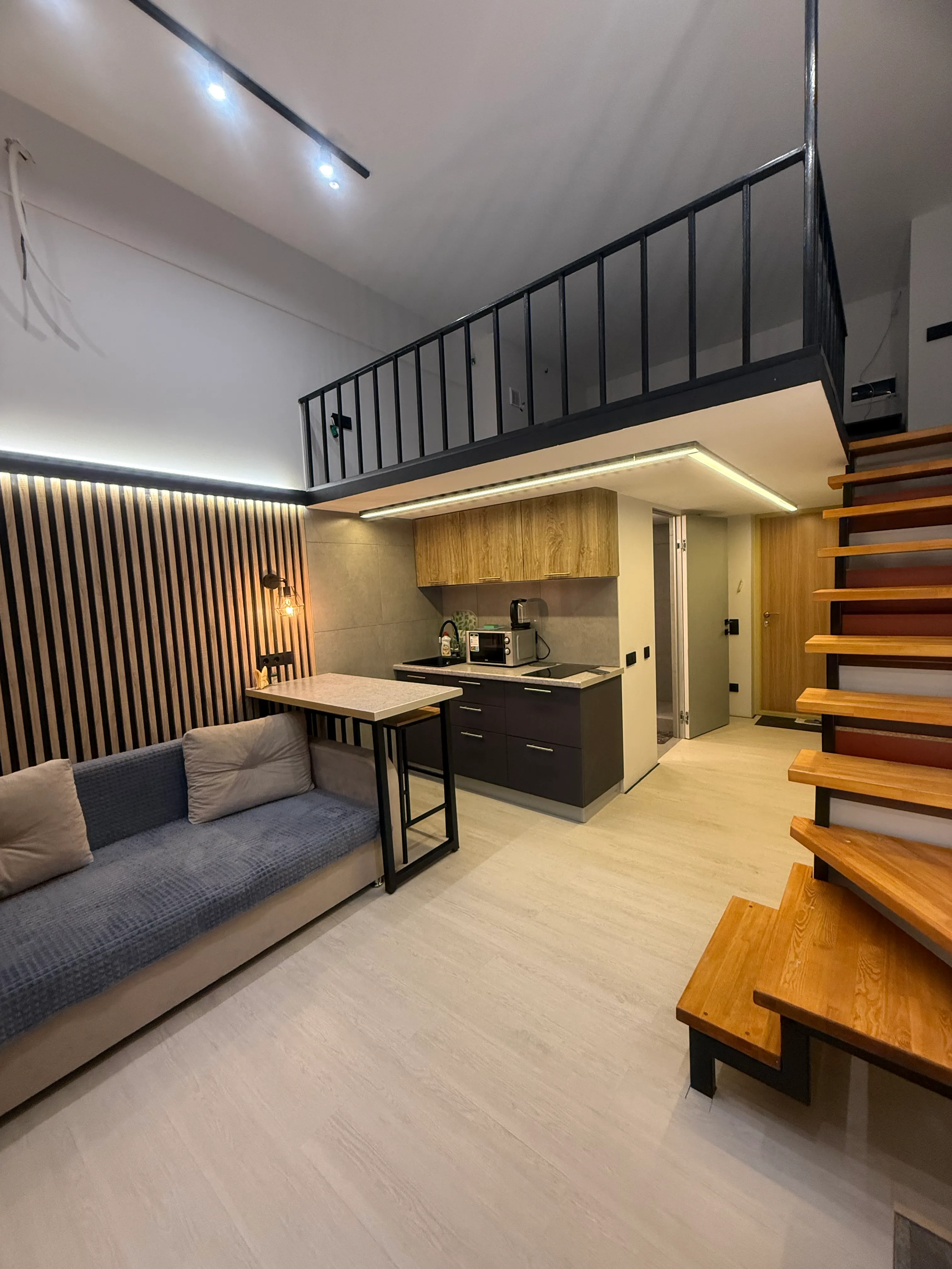 Сдаётся двухуровневая квартира. Выполнен дизайнерский ремонт из дорогих и качественных материалов. Высота потолка 4,2 метра. Первый этаж: прихожая, кухня-гостиная, санузел совмещённый. Второй этаж: полноценная спальня, кровать с подъёмным механизмом. Метро «Окружная», «Владыкино», «Аэроэкспресс» в Шереметьево. В 5 минутах ходьбы Ботанический сад. Вднх. Развитая инфраструктура.