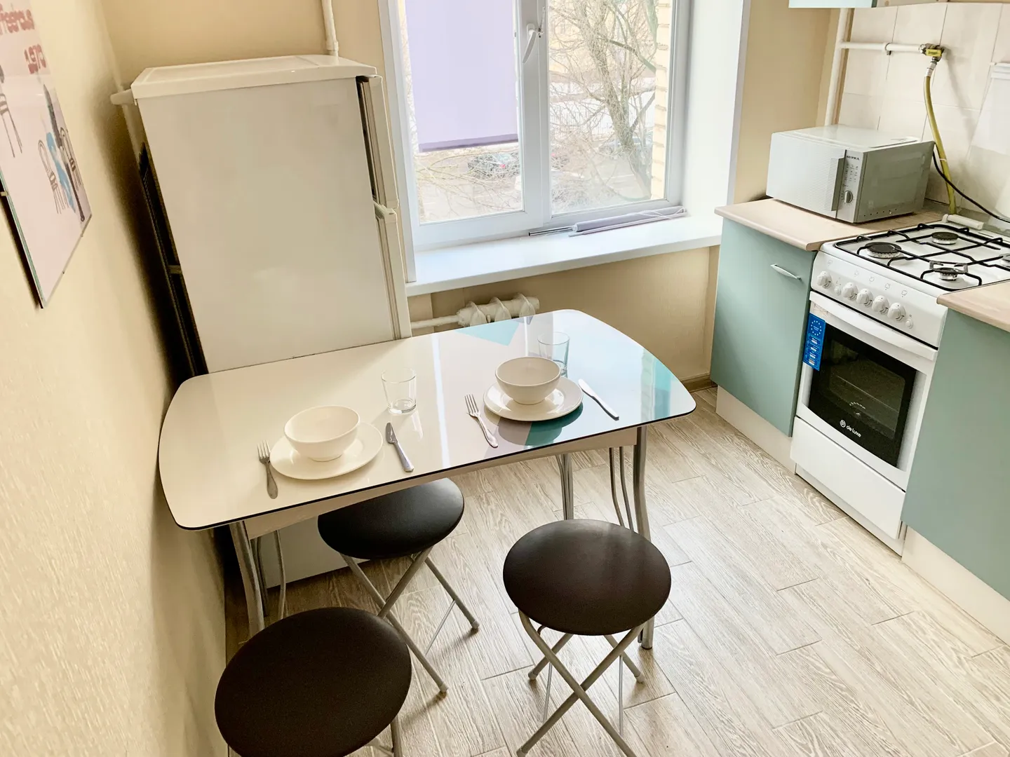 Встроенный кухонный гарнитур, плита, холодильник, микроволновка, электрический чайник, вся необходимая посуда для приготовления пищи, машинка-автомат, сушка для белья, гладильная доска, утюг, фен. Застекленный балкон. Мы предоставляем качественное постельное белье, махровые полотенца, а также чистящие средства, средства личной гигиены. По запросу предоставляем отчетные документы.