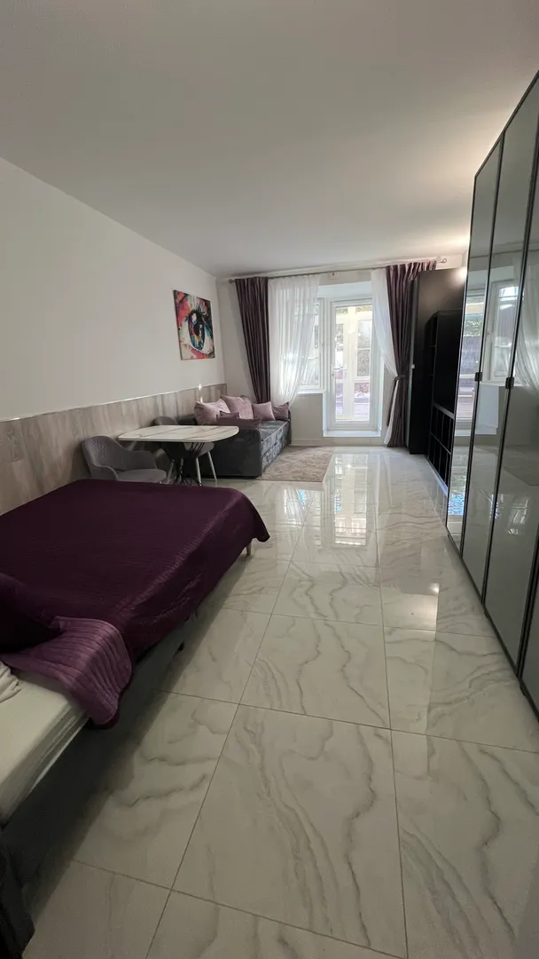Квартира оснащена всем необходимым для проживания: 1,5 кровать, диван- кровать, smart TV, обеденный стол, посуда, холодильник, микроволновая печь, электроплита, чистое постельное белье и полотенца, фен.