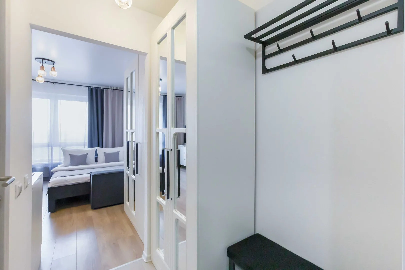 Заселение удобное, расположение у квартиры отличное. Хорошо работающий фен. Чистое постельное бельё из химчистки лежало в запечатанном пакете.
