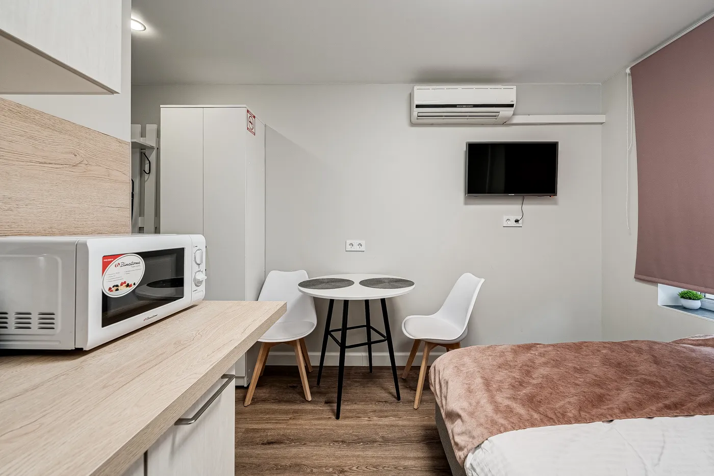 Наши квартиры-студии подходят для проживания 1–2 гостей.