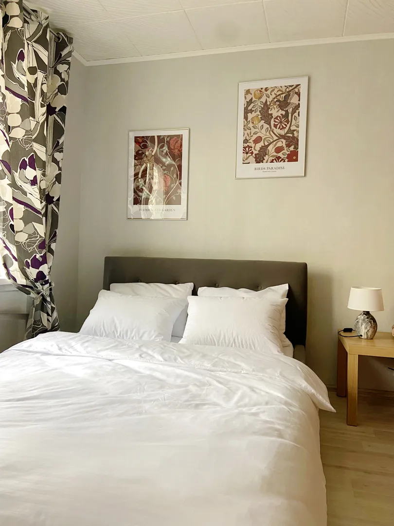 Все для вашего комфорта: посуда, кухонные принадлежности, свежее постельное бельё и мягкие полотенца, гладильная доска, сушилка для белья, средства гигиены, чай, кофе.