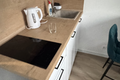 - полностью оборудованная кухня (холодильник, микроволновка, чайник, варочная панель, комплект посуды);