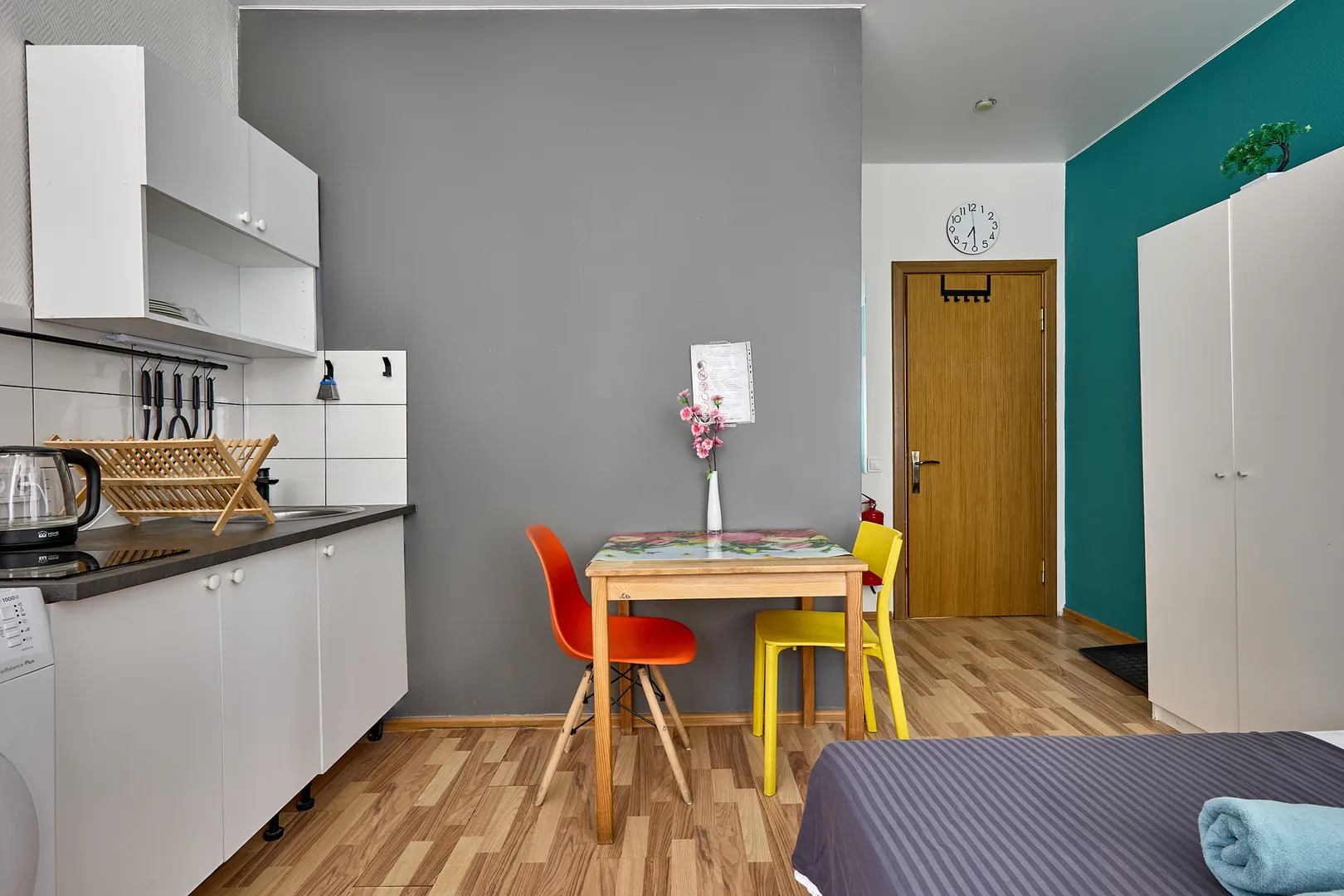 Это скорее не квартира, а апартаменты из общего коридора, поэтому очень низкая звукоизоляция. Я заселилась в 1. 00 ночи, но выспаться не получилось, т. К. Утром другие жильцы начали ходить, выселяться, комнаты начали убирать, пылесосить и мне все это было слышно, как будто это происходит в моей комнате. Отсутствие лифта, пришлось затаскивать тяжеленный чемодан на 3 этаж вручную
