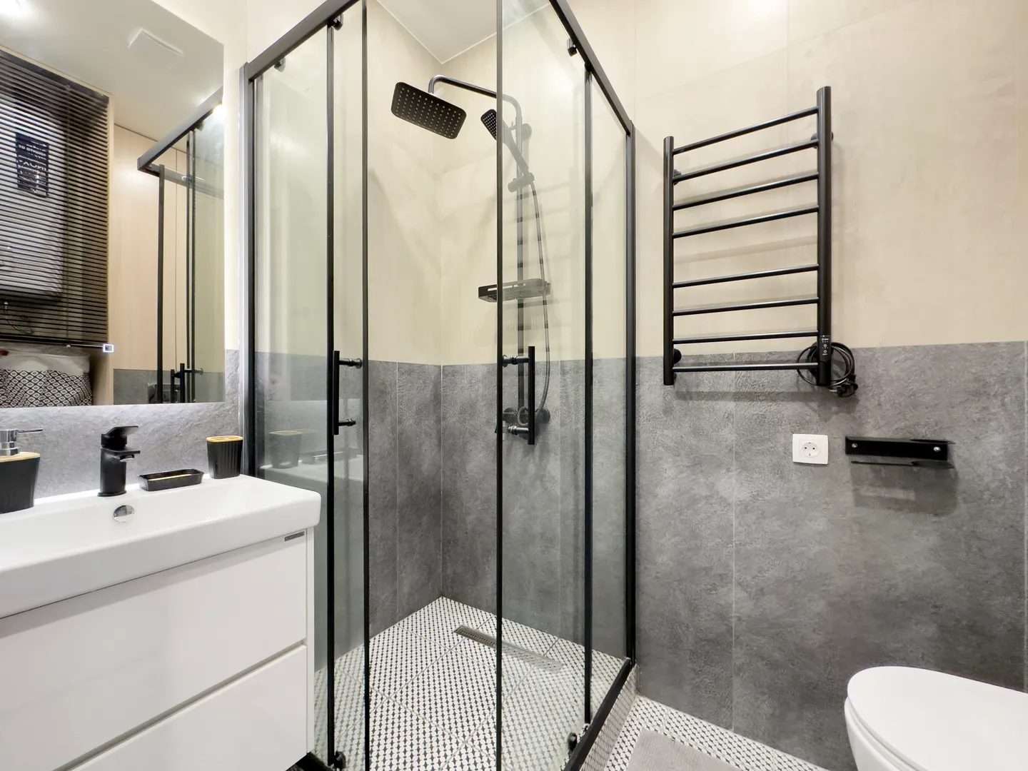 - Ванная комната с душевой кабиной и средствами личной гигиены.