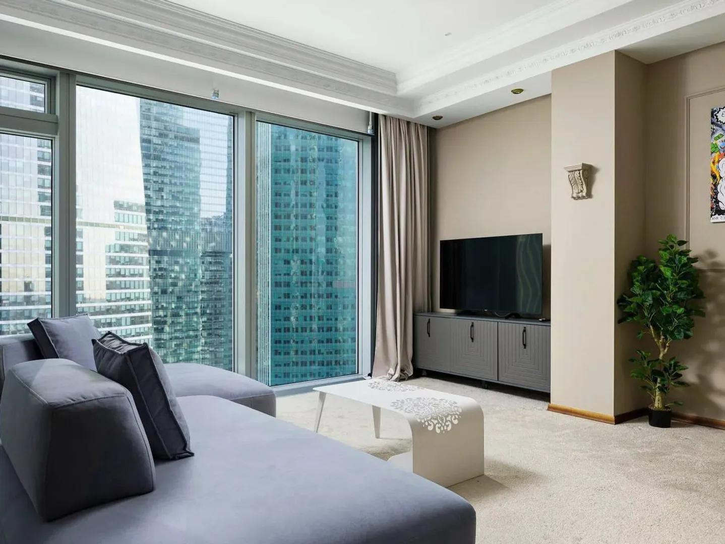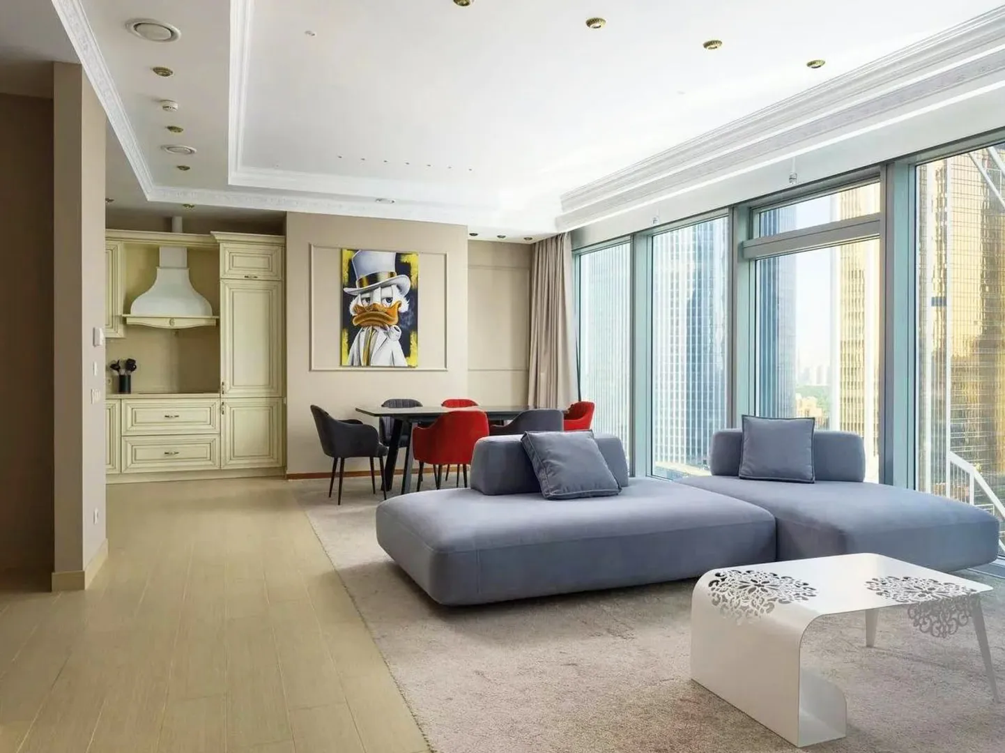 Апартамент расположен на 29 этаже комплекса «Город столиц», в башне «Питер». Имеет самый дорогой во всех смыслах вид на комплекс башен «Москва-Сити». Оборудован современной итальянской мебелью, всей необходимой техникой и электроникой.
