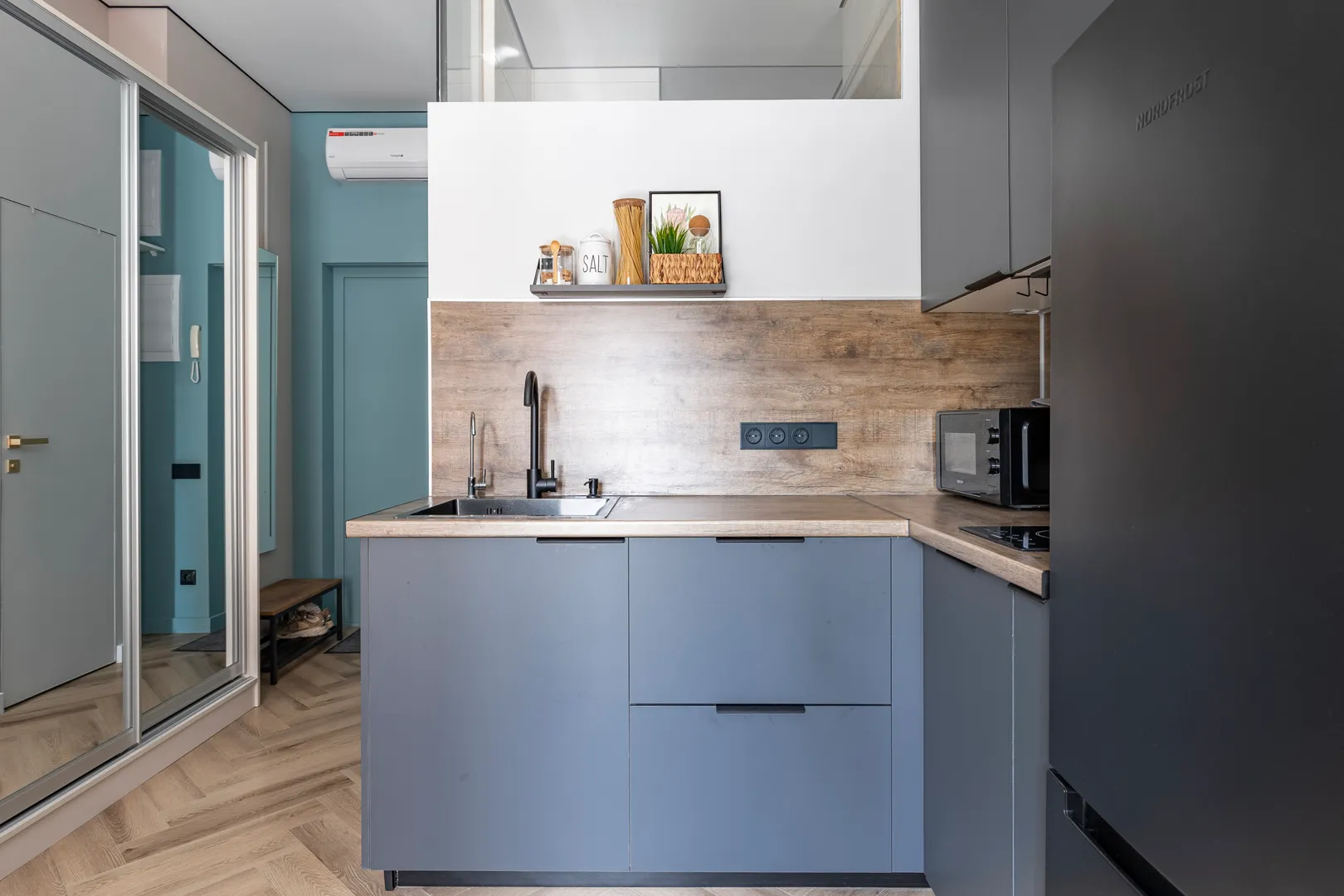 чистая, уютная студия с современным ремонтом, есть все самое необходимое, в том числе приятные мелочи по типу бутылочек воды, пакетиков чая и кофе, просторная удобная кровать и стильная ванная комната, одним словом, очень комфортное жилье