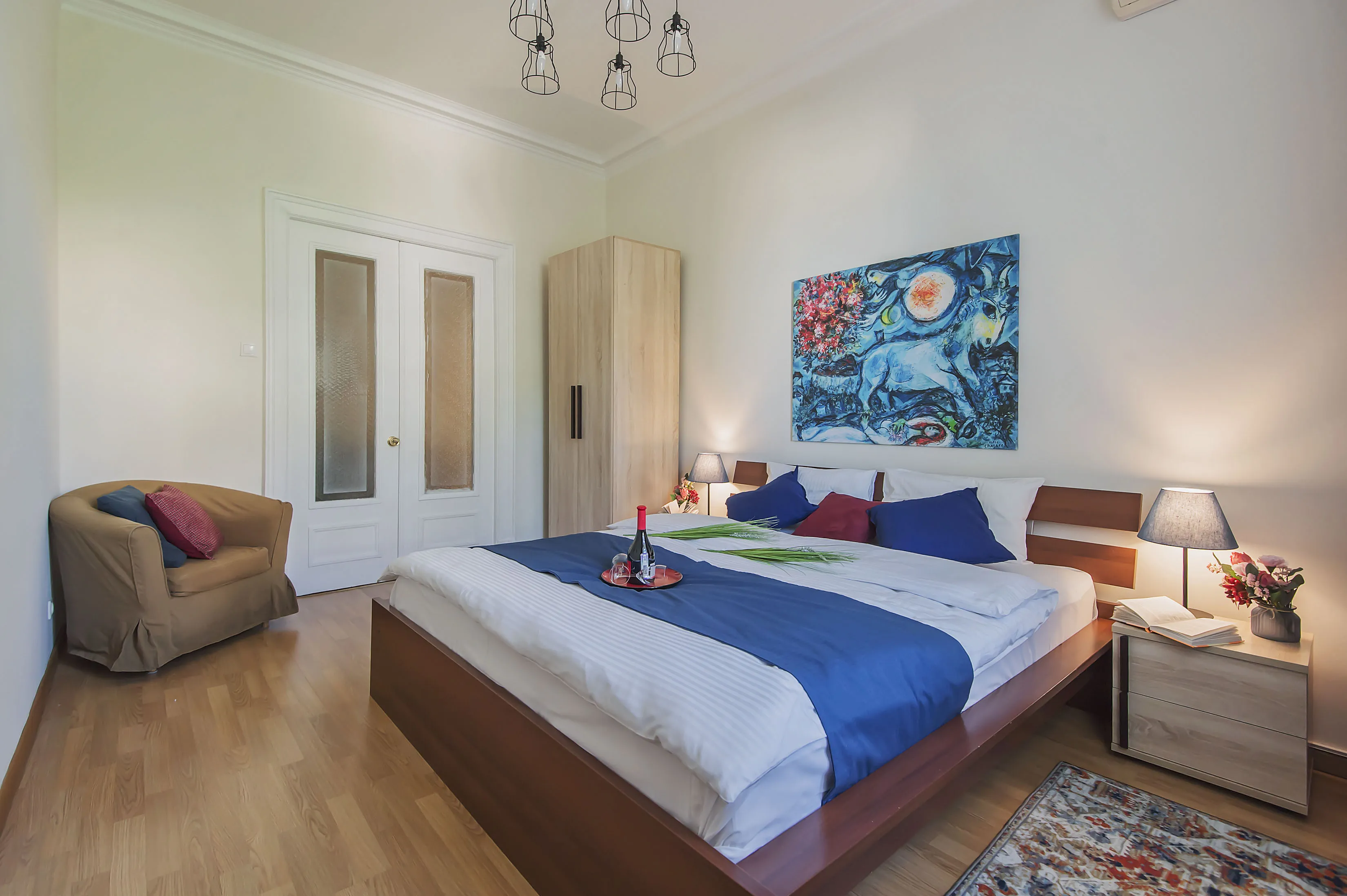 Окна спальни выходят во двор, поэтому вас не потревожит шум с улиц. Мы заботимся о наших гостях и предусмотрели всё для комфортного проживания.