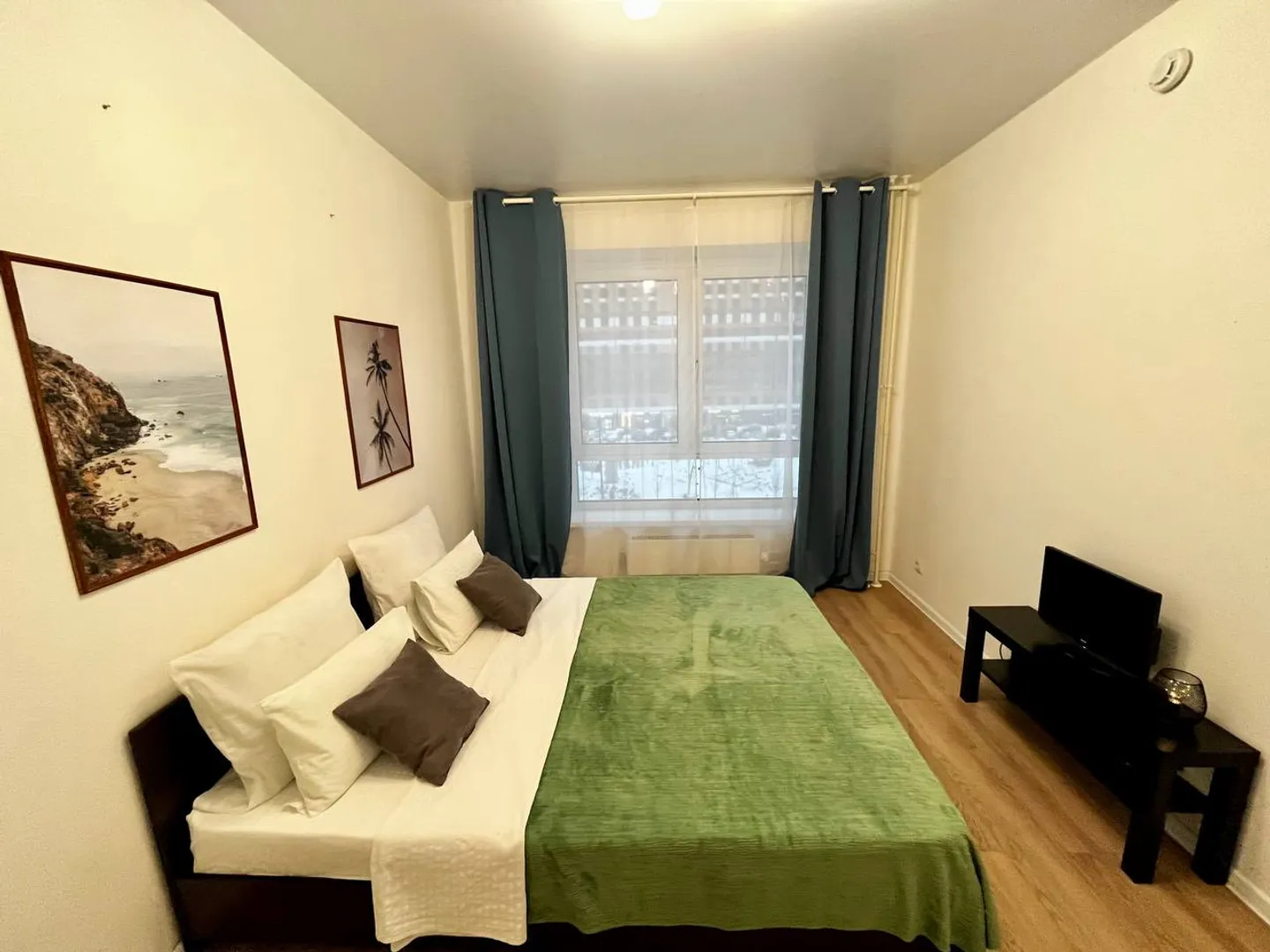 Хорошее расположение , на автобусе от метро 5 минут, рядом куча магазинов, кофеен и прочего Квартира чистая, хорошая