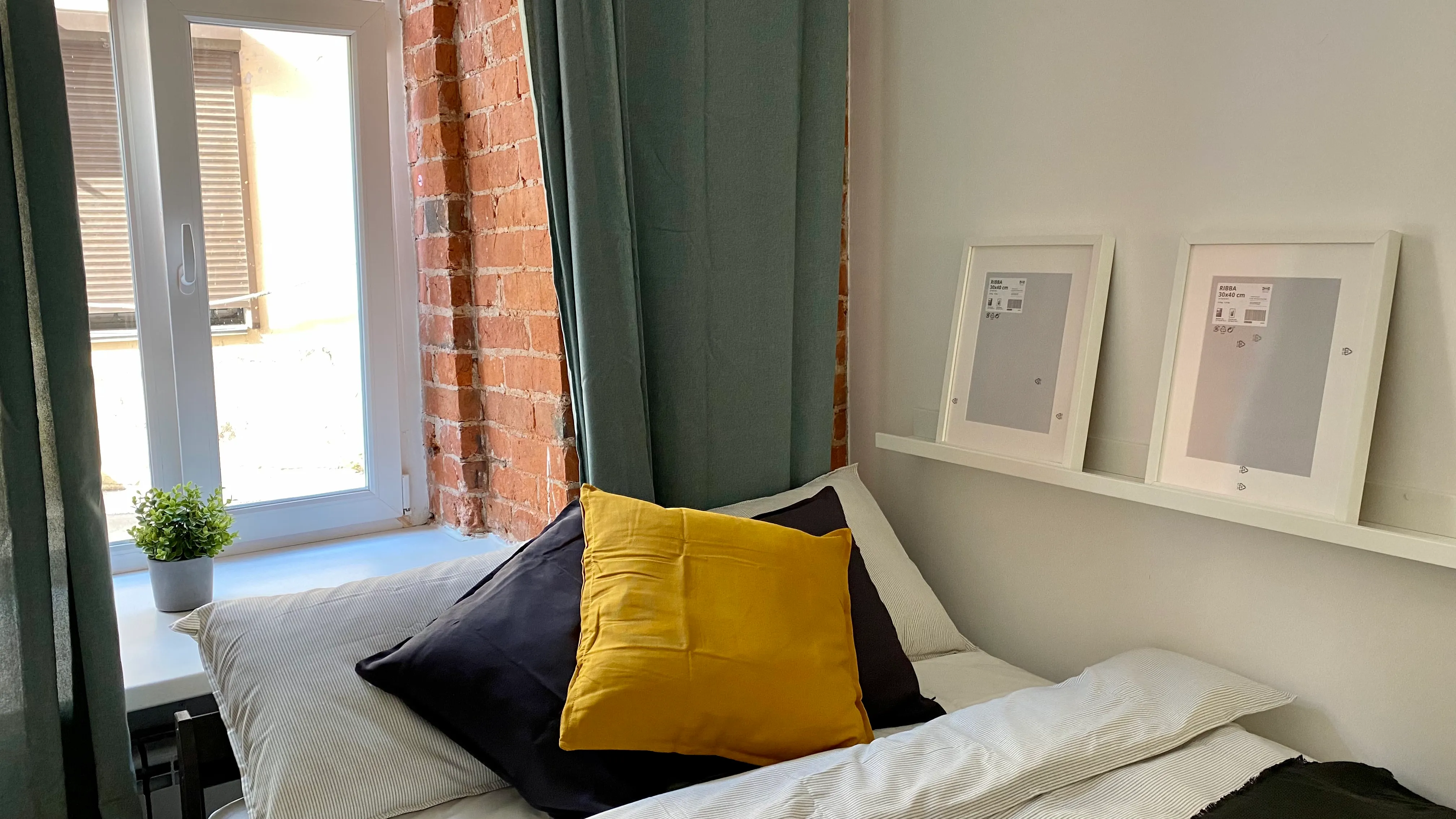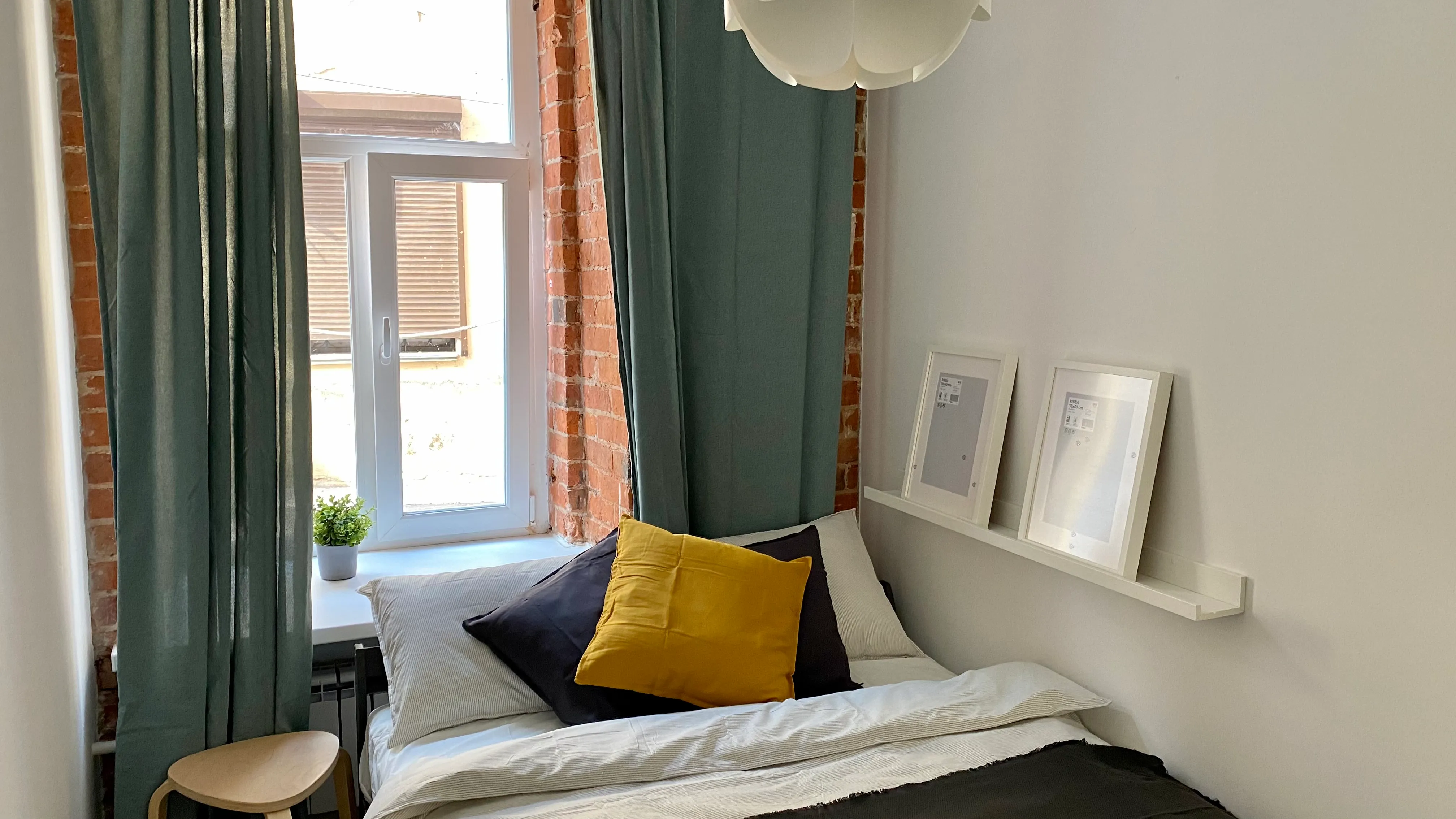Уютная и небольшая комната. Тихий двор. Для всех гостей доступны: два общих туалета с совмещенными душевыми. Самое слабое место нашего необычного жилья - шумоизоляция, поэтому мы просим наших гостей вести себя уважительно по отношению к другим гостям и бесплатно выдаем беруши.