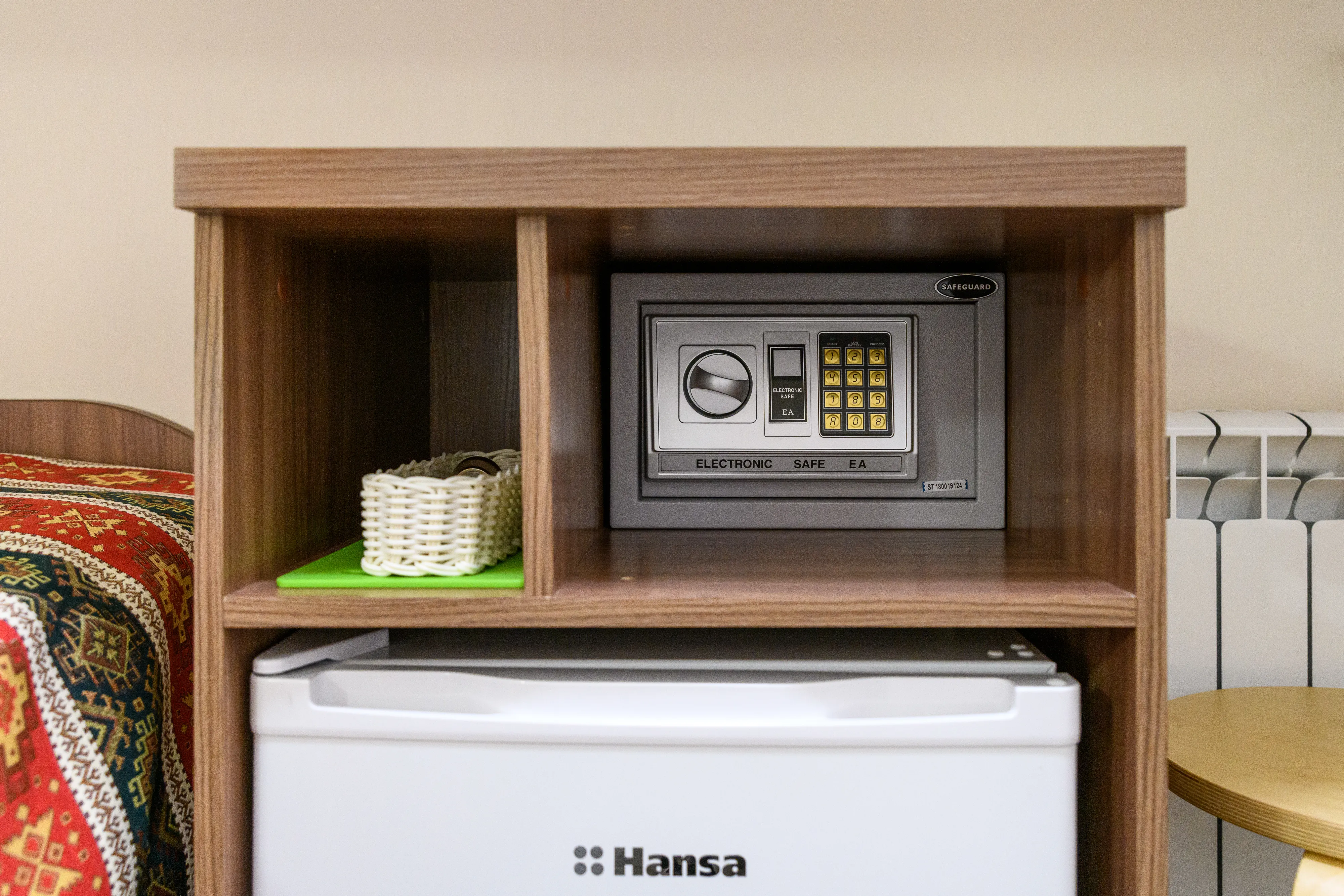 Двухместный однокомнатный номер-капсула, оформленный в современном стиле. В номере: 2 кровати 800*2000, телевизор, холодильник, сейф, телефон, приветственный набор (чай, кофе, печенье, бутилированная вода). ДЛя всех клиентов халаты и тапочки бесплатно.