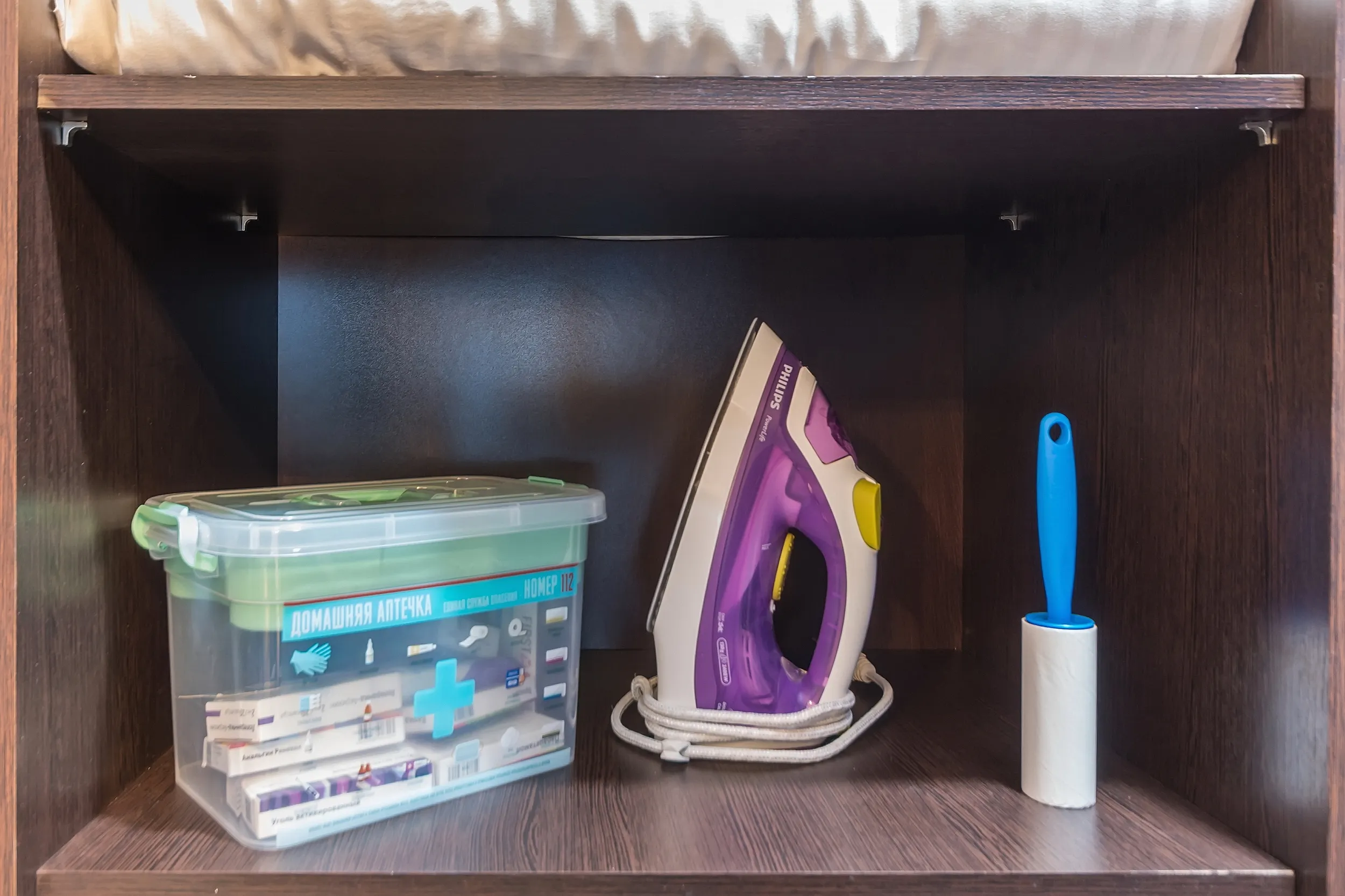 - Гардеробная зона, где есть все для вашего идеального внешнего вида (гладильная доска, утюг, сушилка для белья).