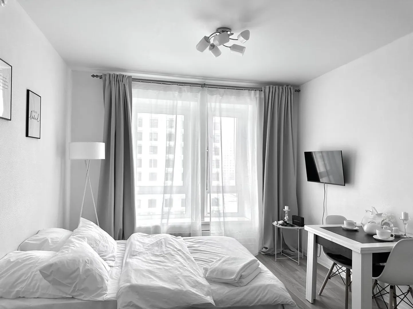 Уютная студия с белоснежный текстилем по высоким стандартам сервиса.