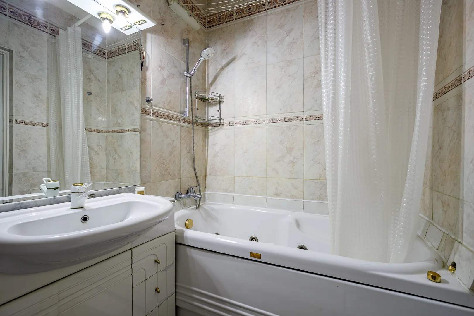 Первое впечатление: на фото квартира выглядит гораздо лучше. Первое, что бросилось в глаза: квартира очень уставшая, поверхностно убрана, грязно — без тапочек на полу ощущались частички мусора. На кухне почему-то всего 1 столовая ложка, 1 чайная ложка, 1 вилка и 1 глубокая тарелка. Зато много тупых ножей, кружек-стаканов и плоских тарелочек, есть салатница. Для семьи из 4 человек неудобно — ели столовыми приборами по очереди. Посуда помыта небрежно — сковорода была жирной, пришлось перемывать. Коврики в ванной не стирались, видимо, с момента покупки, дверь в ванной грязная и обшарпанная.