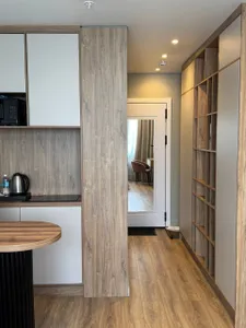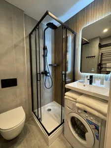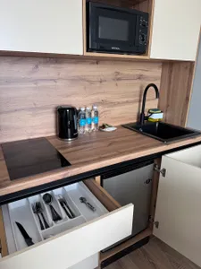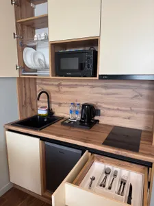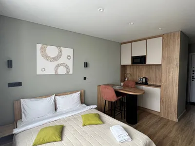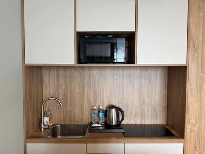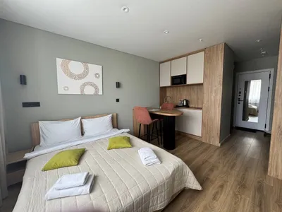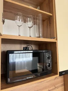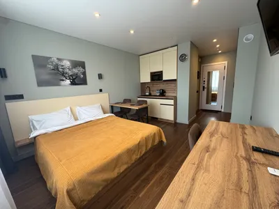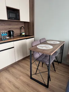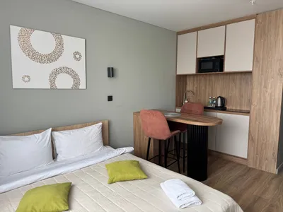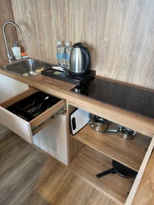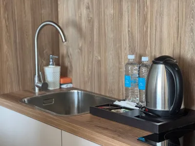 Наши апартаменты полностью оборудованы всем необходимым, для комфортного пребывания и ощущения тепла и уюта родного дома. В каждом апартаменте мы подготовили небольшой кухонный остров, на котором расположились все удобства для любителей кулинарного искусства. Здесь есть собственная индукционная плита, безопасная для использования в небольших помещениях, подходящие для нее кастрюля и сковорода и прочая кухонная утварь. Полный комплект посуды для гостей: тарелки глубокие и плоские, ложки большие и маленькие, вилки, ножи, кружки, стаканы, бокалы и многое другое. Так же гости могут пользоваться и другой бытовой техникой, находящейся в апартаментах, такие как утюг, фен, телевизор со смарт тв, проводной и беспроводной высокоскоростной интернет и др.