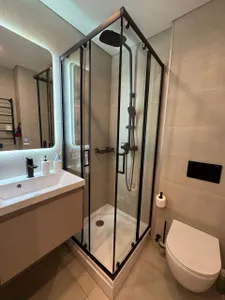О комплексе: огромная лобби - зона для отдыха, встреч и деловых переговоров. Рестораны и бары, полноценный фитнес-клуб и спа с бассейном, переговорная комната. Несколько скоростных пассажирских и грузовых лифтов. Собственная служба охраны. Платная и бесплатная парковки.