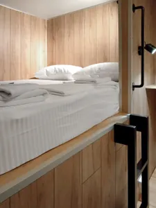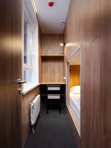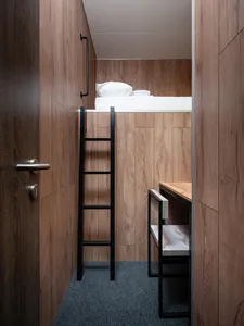Модульный отель «КИГО Спартак» представляет собой уникальный формат размещения: в вашем распоряжении будет номер общей площадью 5 кв. м., со спальным местом и выделенной рабочей зоной. В каждом номере проведена дополнительная шумоизоляция и вентиляция для вашего комфортного размещения и сна.