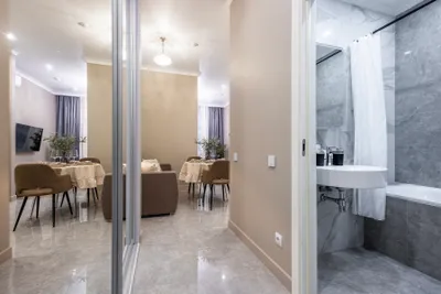 Очень удобное расположение, в апартаментах есть все необходимое, включая технику. Хорошие матрасы, удобные подушки, блэкаут шторы и хорошая звукоизоляция - все, чтобы хорошенько выспаться перед следующим забегом по выставкам и музеям. Для большой компании самое то.