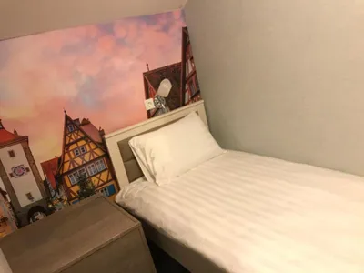Маленький номер, окна упирались в стену соседнего здания, есть перепад высоты пола, про который всё время забываешь.