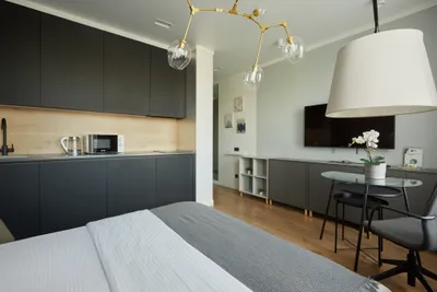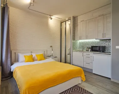 Стильная лофт-студия с кухней рядом с Ботаническим садом