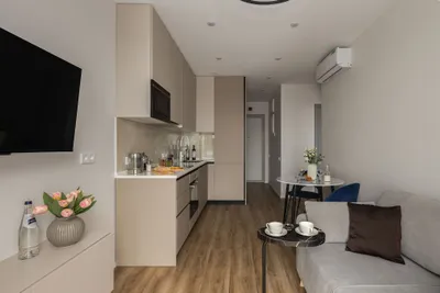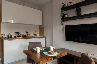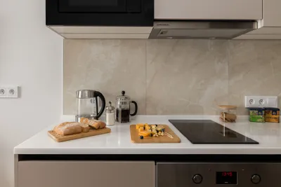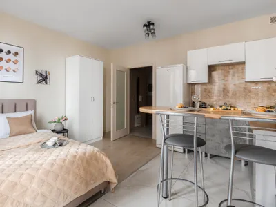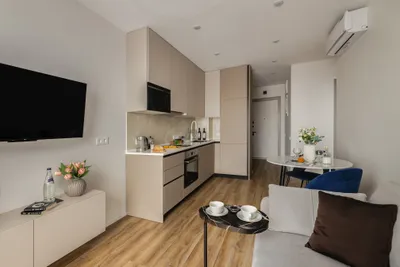 Каждый из апартаментов обеспечен всем необходимым для комфортного проживания: посудой, столовыми приборами, средствами гигиены, стиральной машиной и полностью оборудованной кухонной зоной, а также smart tv, утюгом и гладильной доской. Гостям предоставляется бесплатный wi-fi.