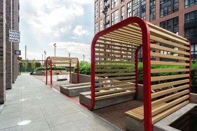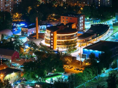 В жилом комплексе на первых этажах работают более 30 различных кафе, ресторанов и баров, продуктовых магазинов.