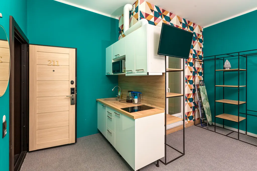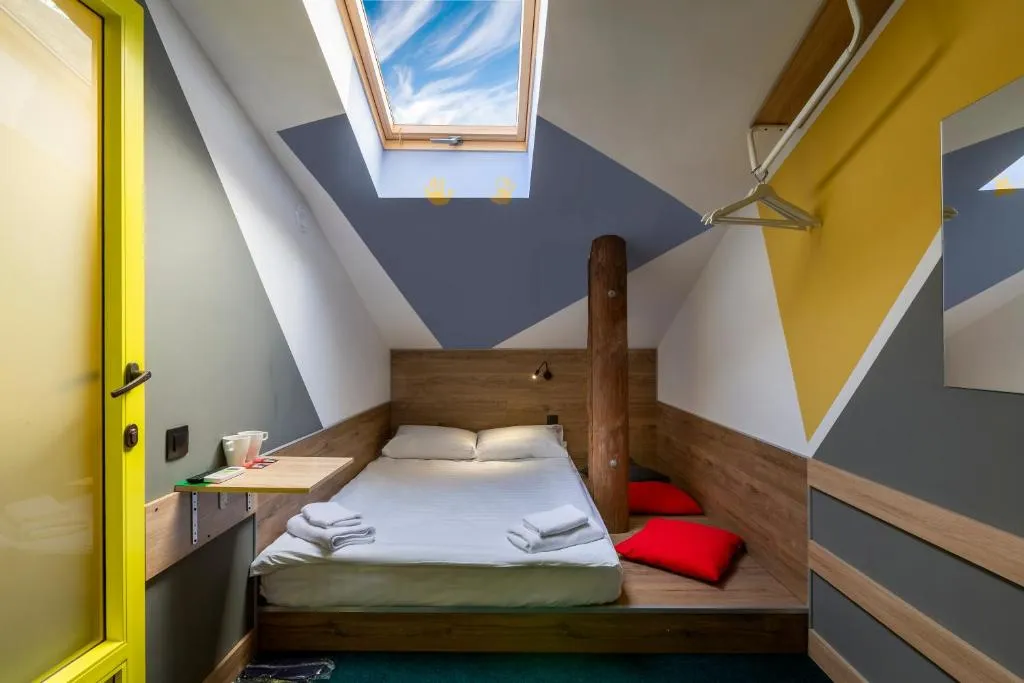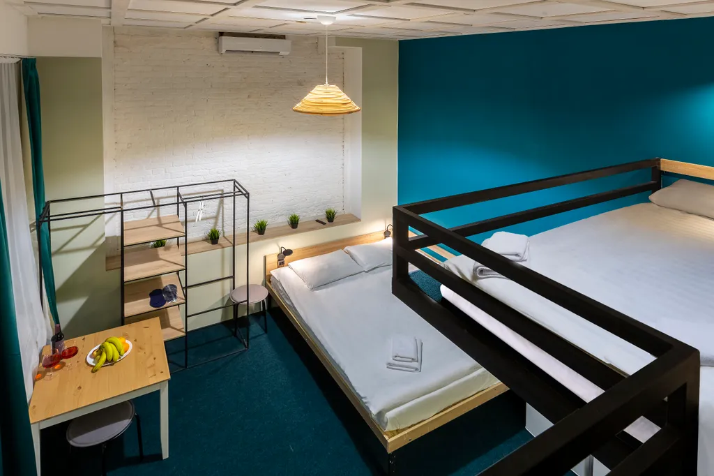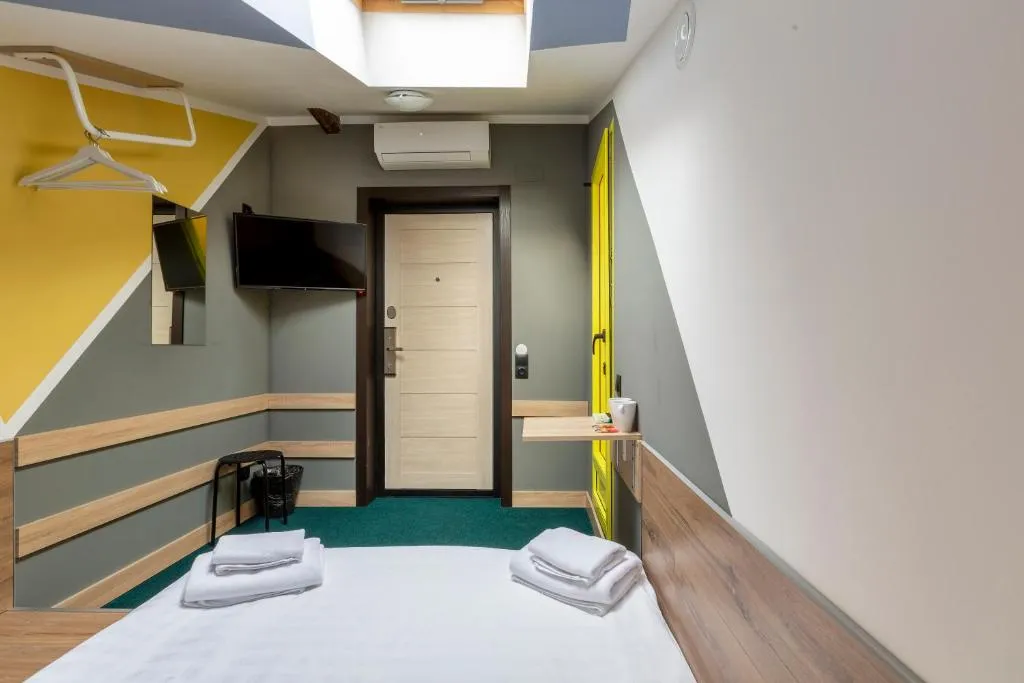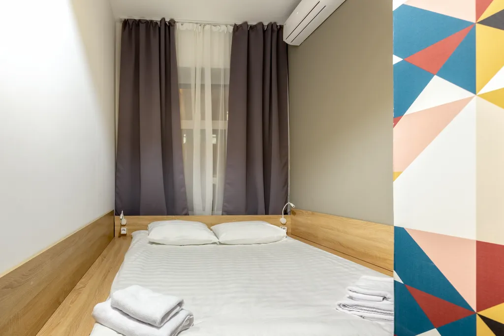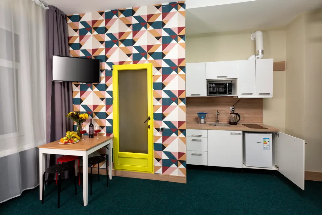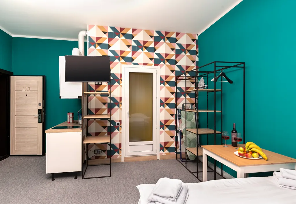 В наличии 57 стильных номеров с яркими цветовыми акцентами. В их оснащённость входит кондиционер, плоский телевизор, вешалки для одежды и