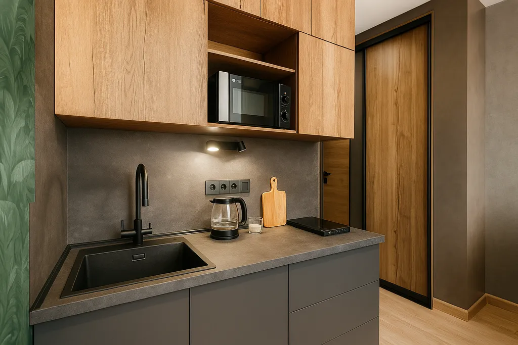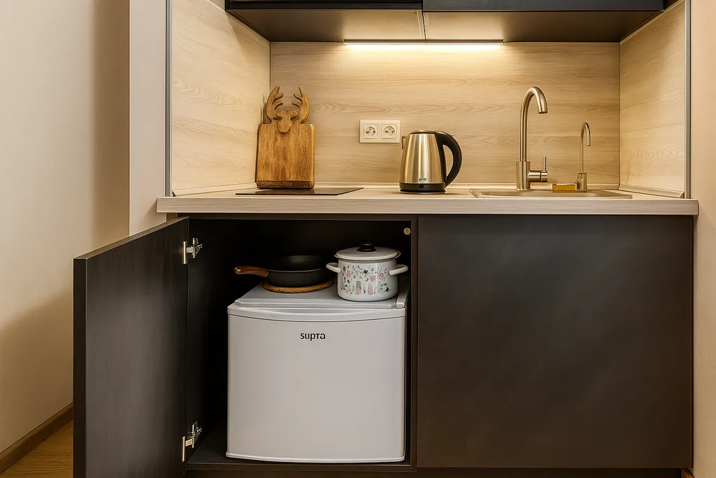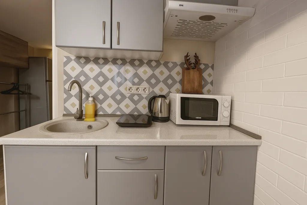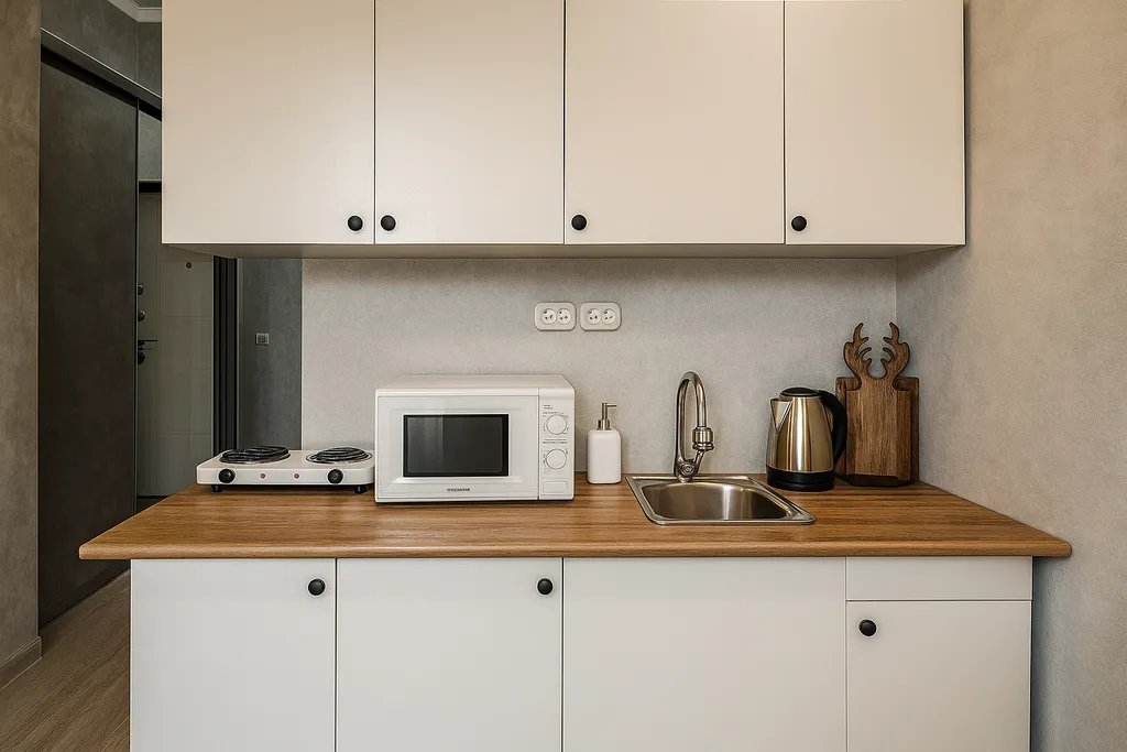 -Кухня во всех… апартаментах → готовьте сами или наслаждайтесь доставкой.