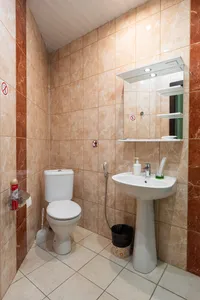 На общей кухне можно приготовить домашние блюда или разогреть еду. Кроме того, рядом находится продуктовый магазин и аптека.