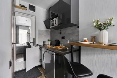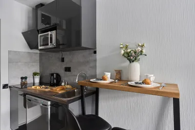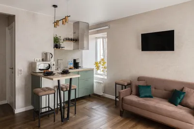 В целом все соответствует фото, но только оказавшись внутри понимаешь, что апартаменты такие крошечные. Для одного человека более менее, для двух очень тесно. Апартаменты находятся на 3 этаже, это плюс, тк внизу кафе, рядом магазины и не хотелось бы жить ниже. Но в здании нет лифта, если это важно. Было чисто, есть все необходимое для проживания (посуда, утюг и тд).