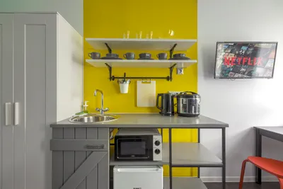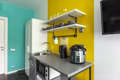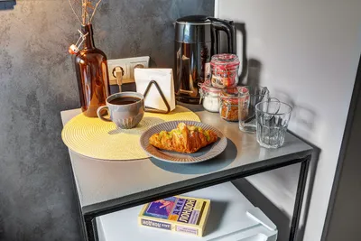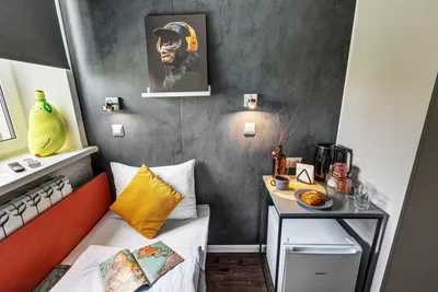 Сам номер маленький, но функциональный и уютный. Есть все необходимое: фен, одноразовые тапочки, чайник, сайный набор, сахар. На 4м этаже на общей кухне есть натуральный кофе (платно)