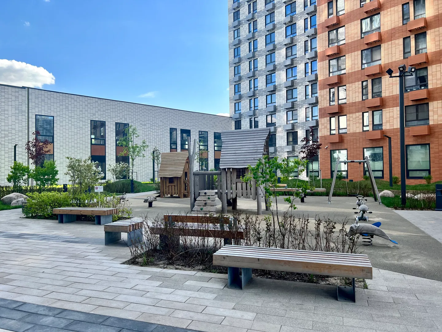 Территория ЖК закрытая, уютная, охраняемая, без машин и с детскими/спортивными площадками.