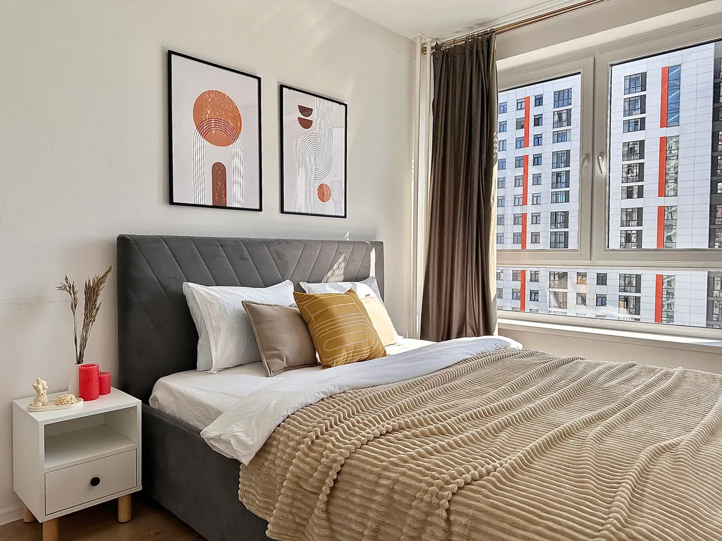 Удобно со стороны нашего города, оставили машину места всегда находим, метро у дома, в доме много магазинов и кафе, хорошая шумоизоляция, вайфай, 3 спальных места бельё на все спальные места, уборка нормальная. 2 санузла. Белое бельё и полотенца.