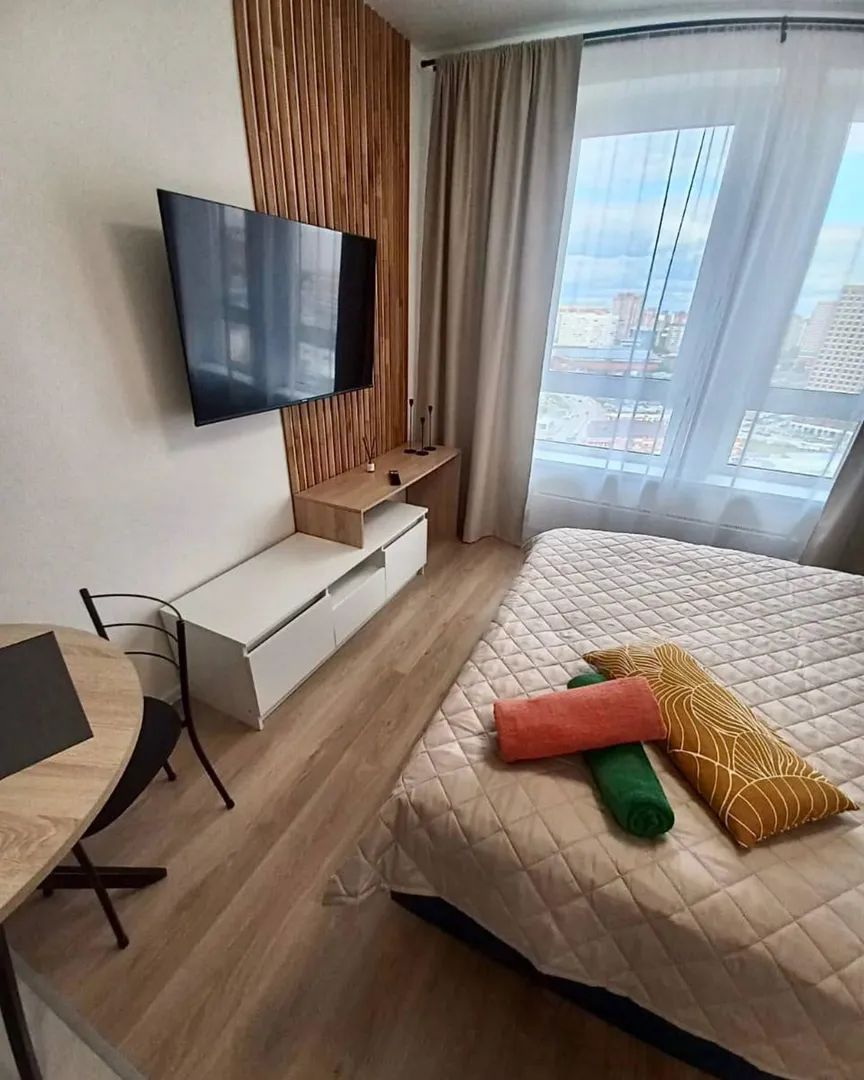Срочно нужна была квартира, бронь подтвердили мгновенно, заселили день в день, без проблем. После подтверждения брони, сразу скинули всю необходимую информацию, очень удобно! Хозяева всегда были на связи, единственное в чем не повезло, один день не было горячей воды (была авария в доме) и сбой с интернетом, не критично. Квартира чистая, уютная. Все самое необходимое имеется. Порадовало наличие шампуня, геля для душа и зубной пасты, все было новое! Остались довольны!
