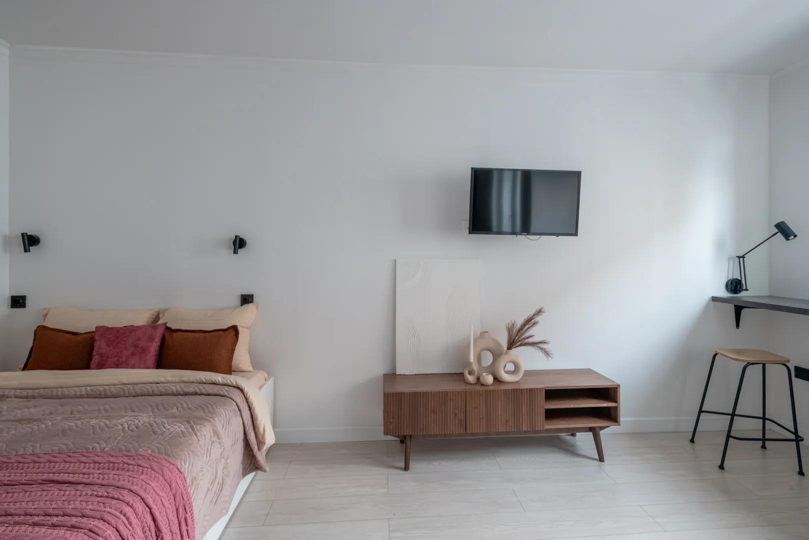 Удобства: полноценная двуспальная кровать 140*200 с качественным ортопедическим матрасом; раскладной диван.