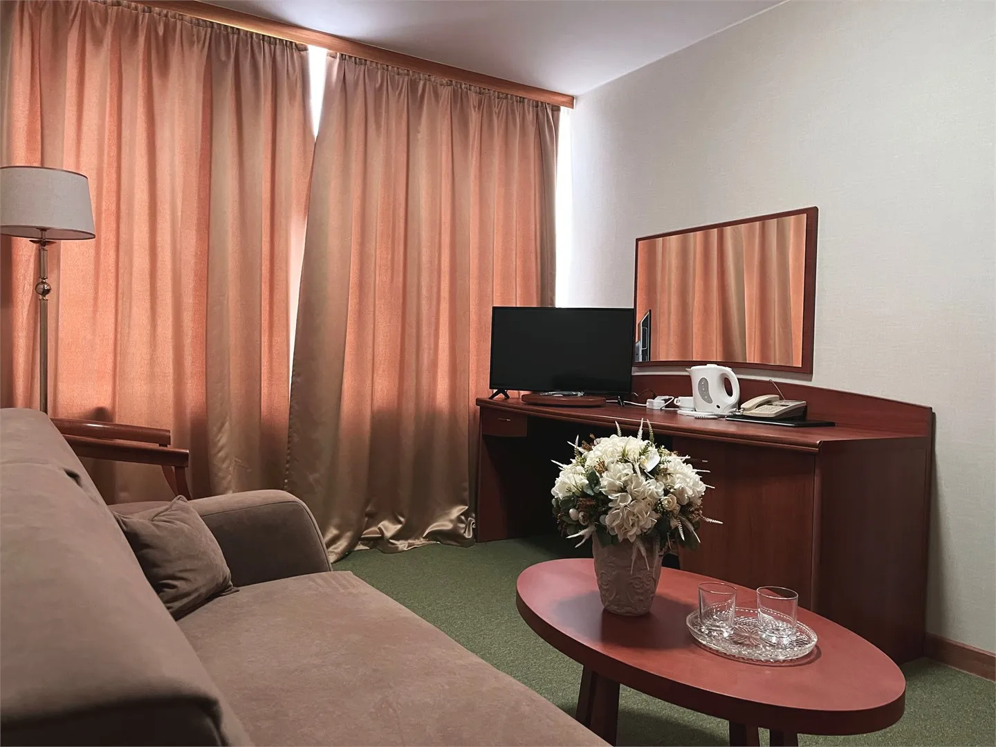 Номер категории «люкс» состоит из уютной спальни, элегантной гостиной и ванной комнаты. В номере имеется большой телевизор, телефон, холодильник, система индивидуального кондиционирования и отопления, отдельная ванная комната с туалетными принадлежностями, фен, халат, тапочки.