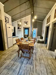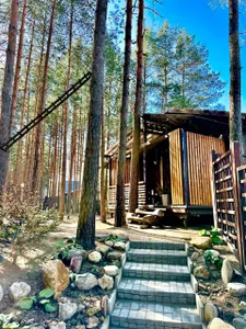 Комфортный домик: внутри симпатичный загородный дизайн, комфортная мебель и два туалета. Хозяева открыты к вопросам и всегда на связи. Дополнительно можно забронировать баню. В доме хорошая звукоизоляция - подходит для праздников. Все это находится в сосновом лесу. На территории много развлечений для детей. ещё... скрыть
