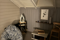 -Вторая комната для гостей с большим шкафом, раскладывающейся кроватью, книгами и игрушками, небольшим рабочим местом, и со своим санузлом.
