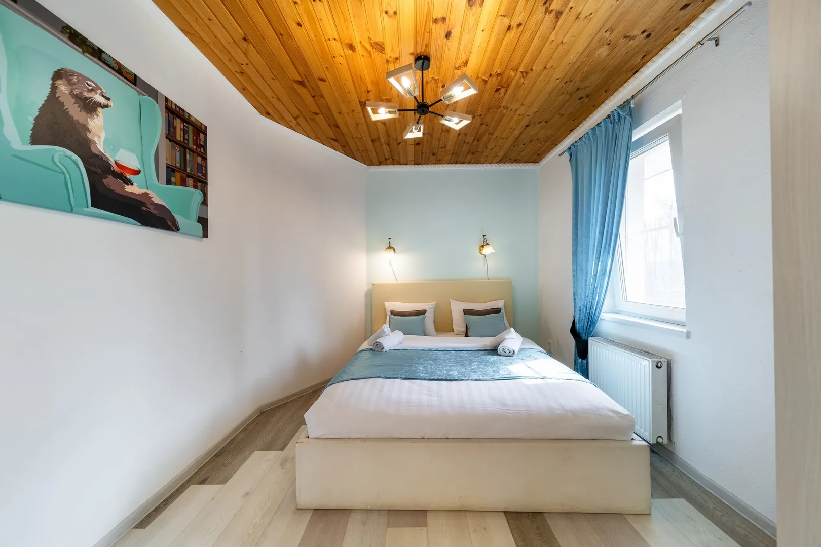 В спальнях ортопедические матрасы, качественное бельё из сатина, комоды и шкафы, прикроватные столики.