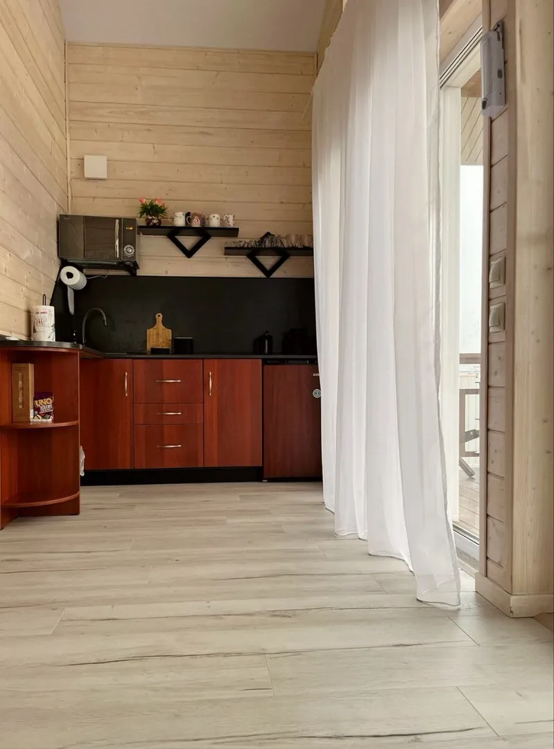 - Просторная кухня-гостиная с диваном-кроватью, телевизором.