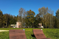Зона отдыха во дворе оснащена мангалом и шампурами.